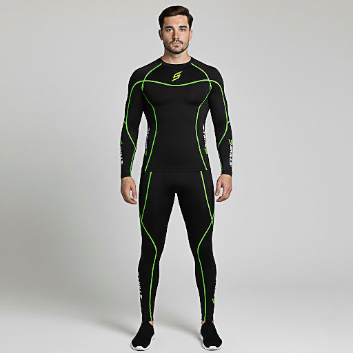 MEN’S BLACK/GREEN COMPRESSION LONG SLEEVE SHIRT AND PANTS SET