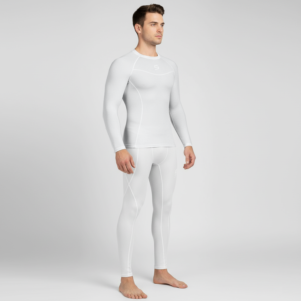 Compression Men's Base layer White Top Skin Fit Shirt + Pants / Tights set